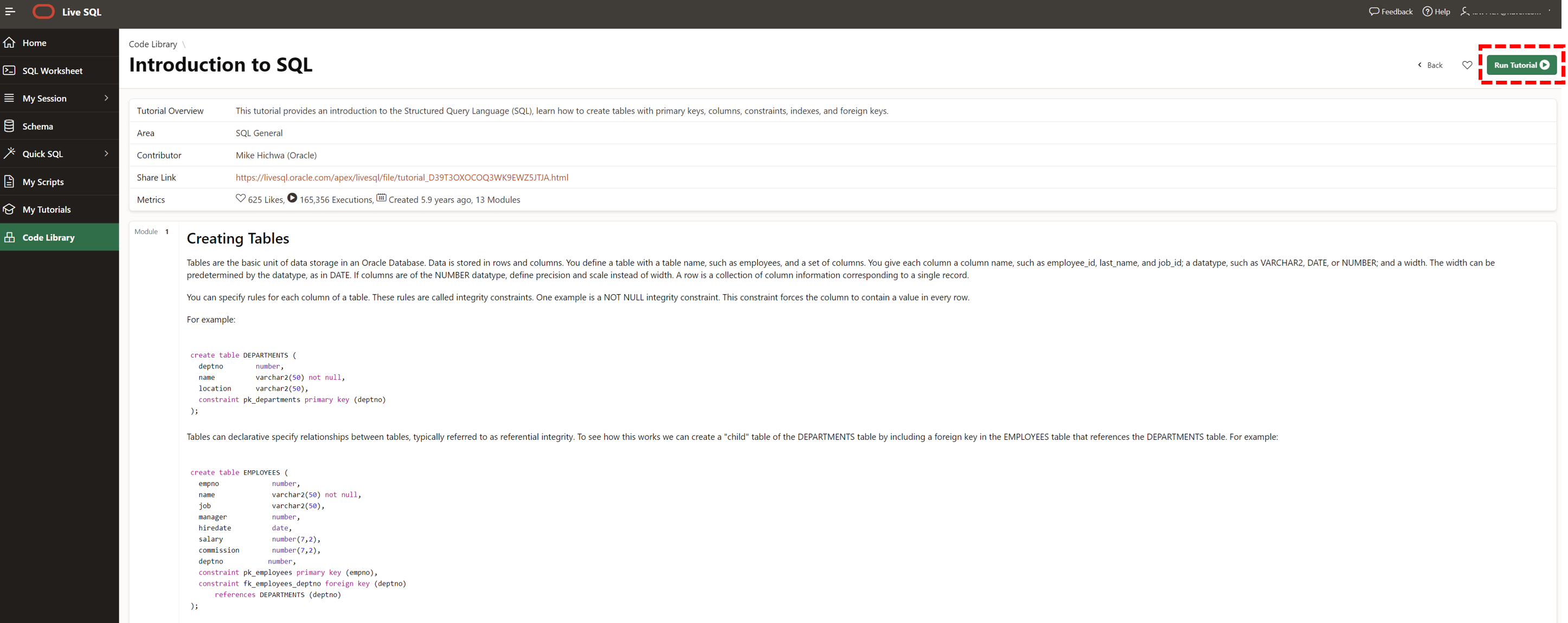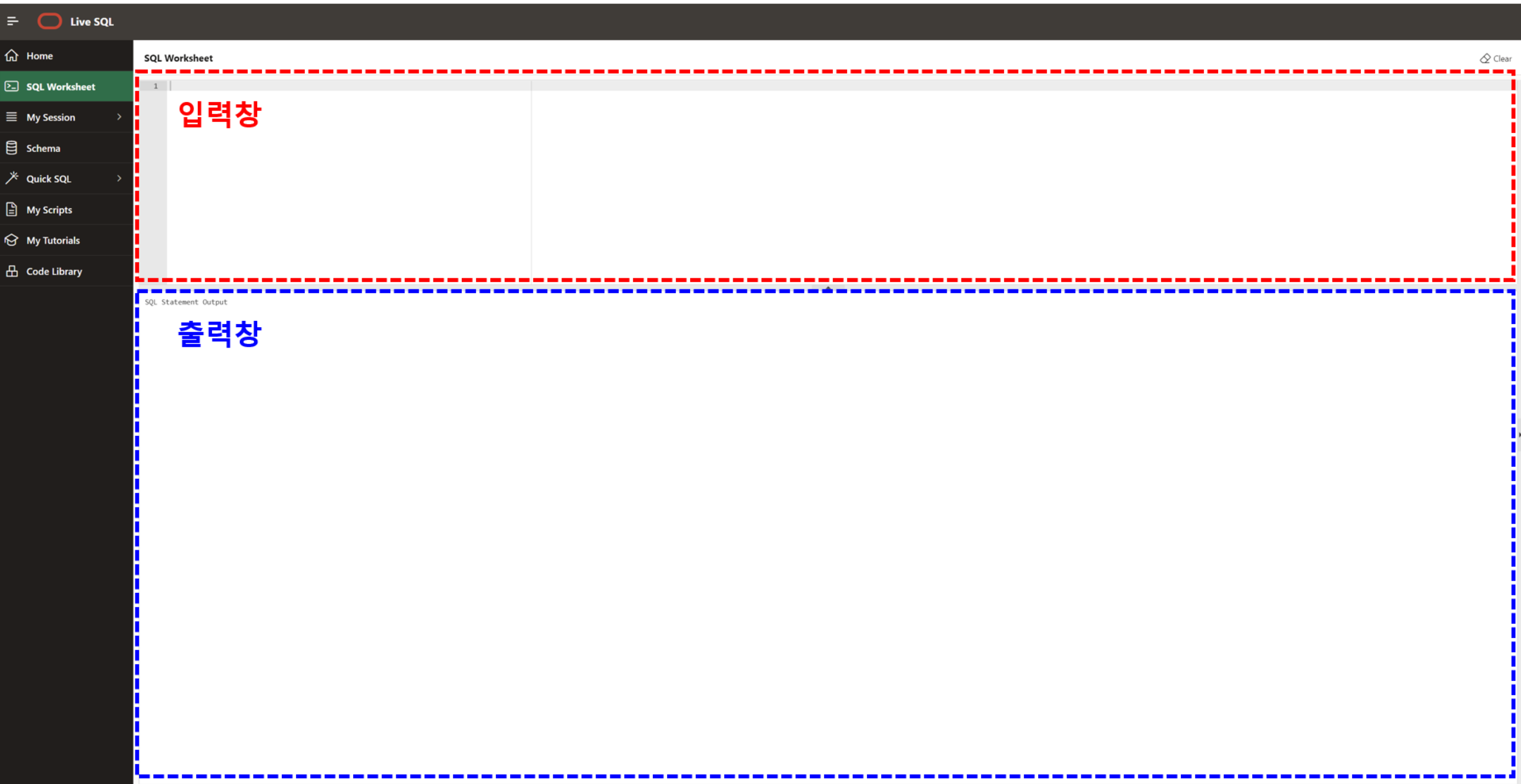 - 주소 : https://livesql.oracle.com/apex/f?p=590:1000:0